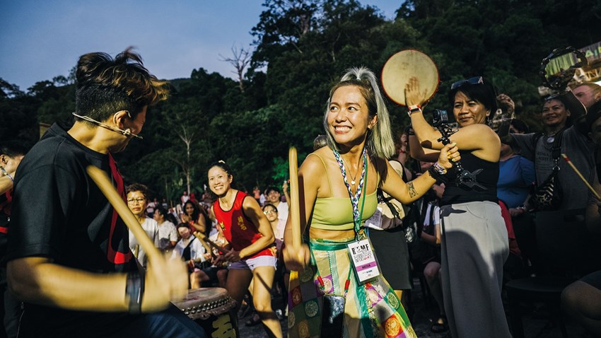 Festivalgoers get involved in a drum circle