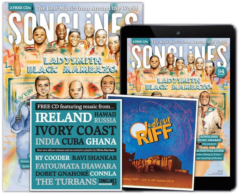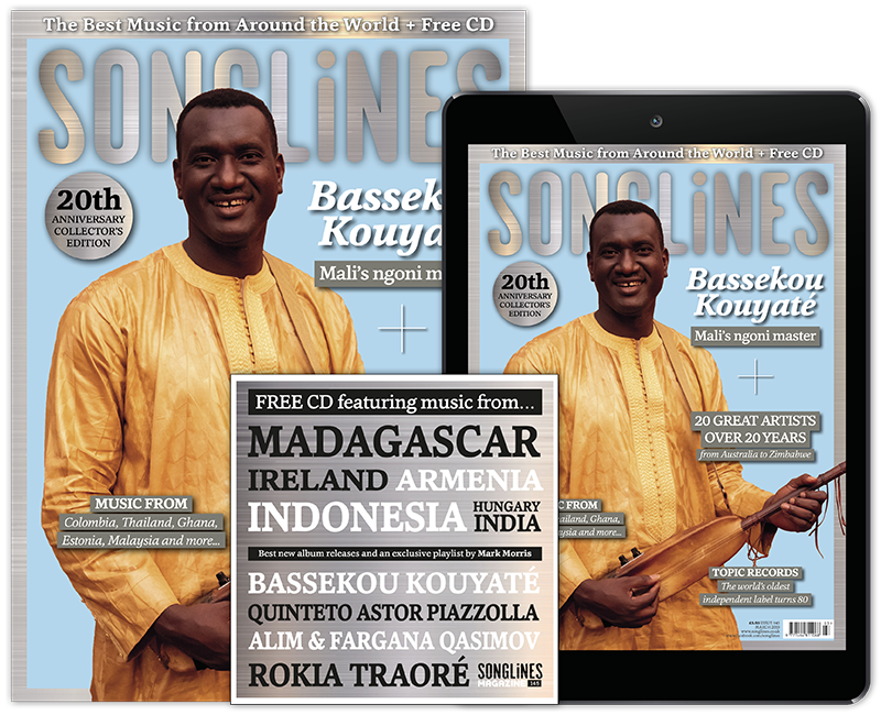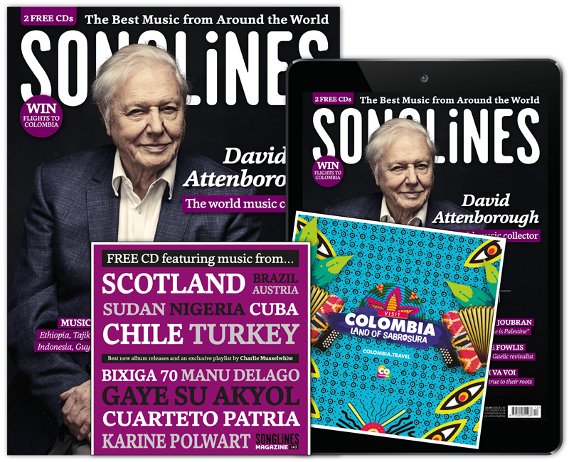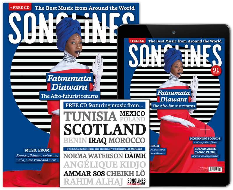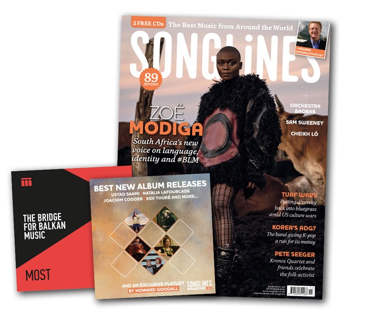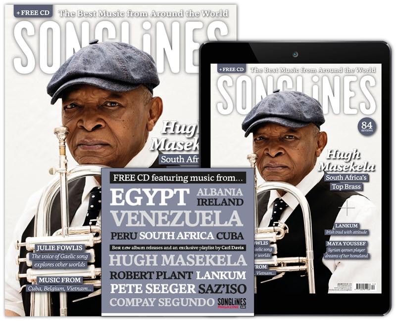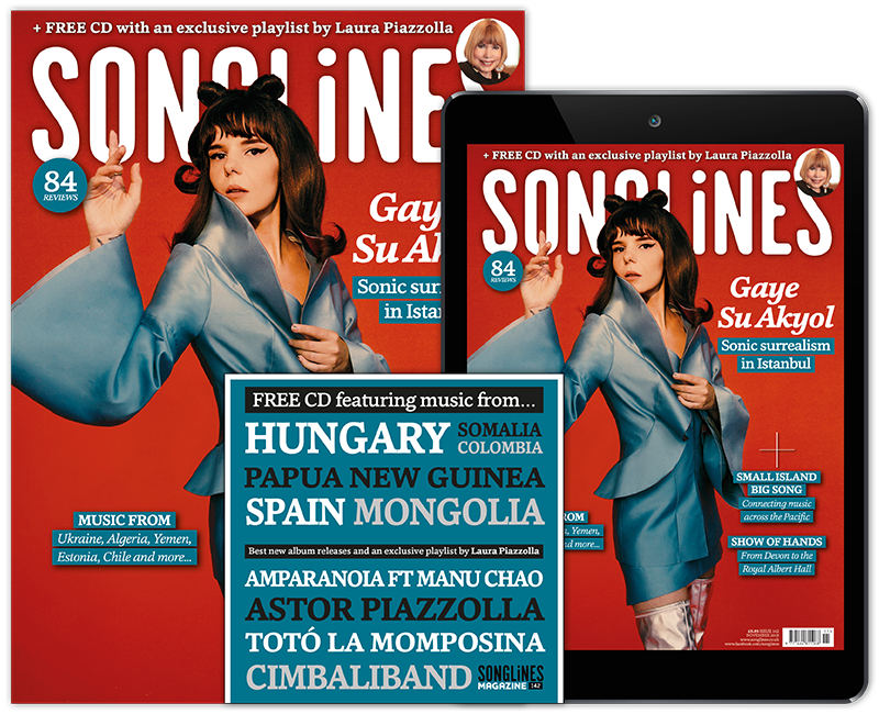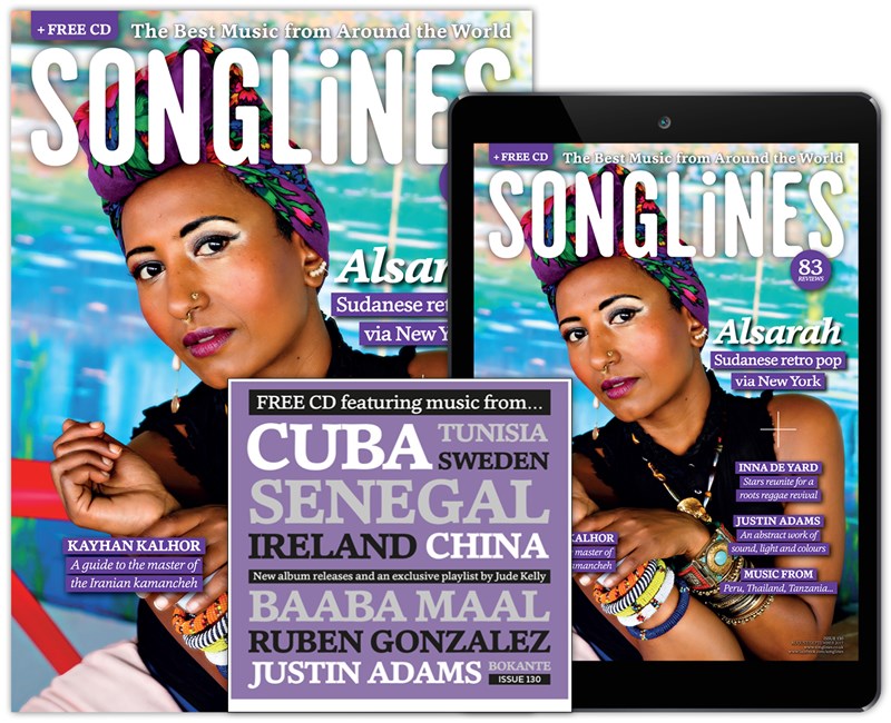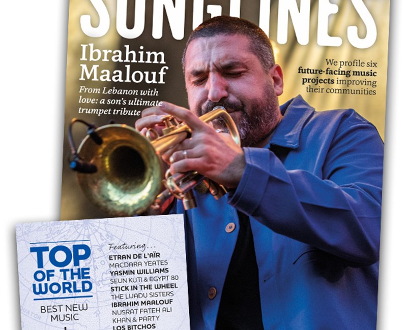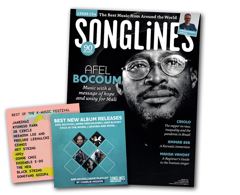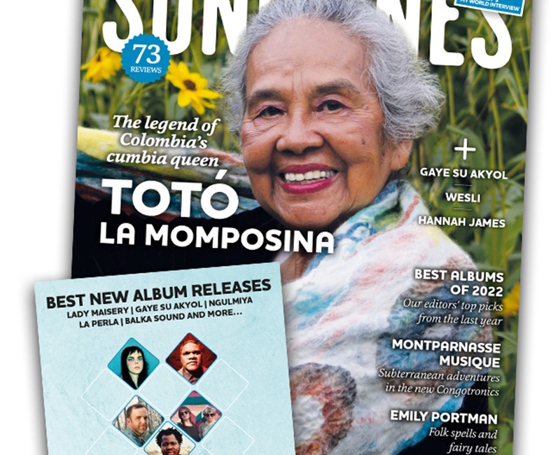 Print and digital subscribers will also receive our accompanying Top of the World compilation featuring our pick of the month’s best new music – Mulatu Astatke, Cerys Hafana, Abel Selaocoe, Meral Polat, Guitari Baro, Yasmine Hamdan, Söndörgő and more – as well as five ‘WOMEX showcase’ bonus tracks from Manhu, BITOI, Bobo & Behaja, Suraros do Tapajos and Yegor Zabelov.